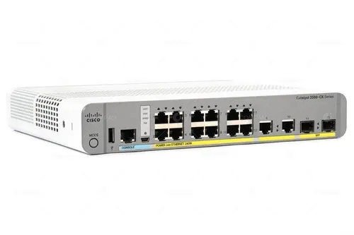 The Cisco Catalyst WS-C3560CX-12PC-S is a compact, enterprise-class Layer 3 switch from the Catalyst 3560-CX Series. It is designed for space-constrained deployments such as branch offices, retail stores, hotels, and industrial sites where quiet operation, Power over Ethernet (PoE), and high performance are essential.