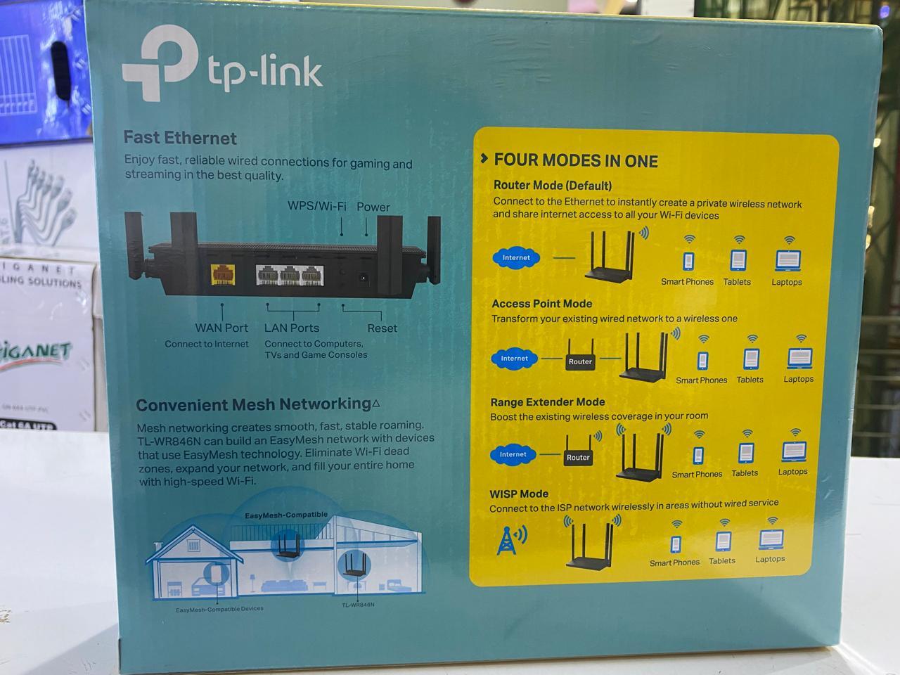 The TP-Link TL-WR846N is a versatile 300 Mbps Wi-Fi router designed for flexible home and small office networking. Supporting multiple operation modes, including Router, Access Point, Range Extender, and WISP, it adapts to different scenarios with ease.